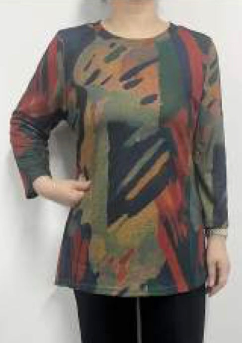 Printed Pullover Top with Round Neck and 3/4 Sleeves![]()  - Regular price