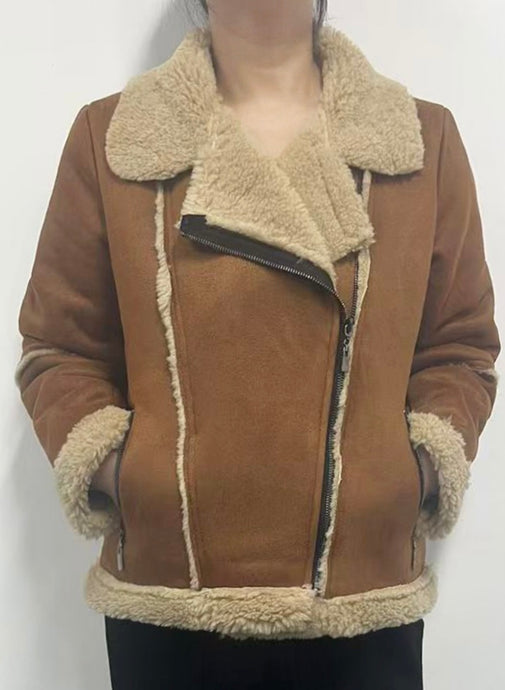 Retro Faux Suede Jacket with Assymetric Zip Up Front