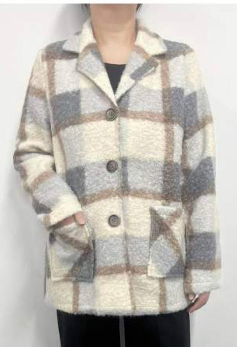 Plaid Boucle Coat with Front Pockets